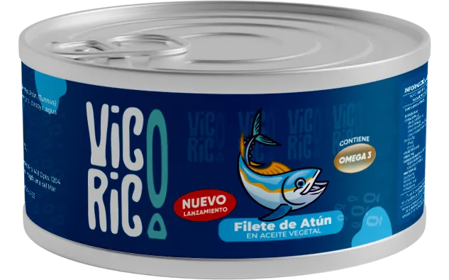 Nuestra conserva de Filete de Atún ofrece lomos seleccionados, presentado en piezas enteras y firmes, este producto se sumerge en un aceite vegetal de alta calidad que actúa como sello de frescura, manteniendo la suavidad de la carne y resaltando su color rosado característico. Presentación en caja de 48 unidades de 140 g y 170 g.