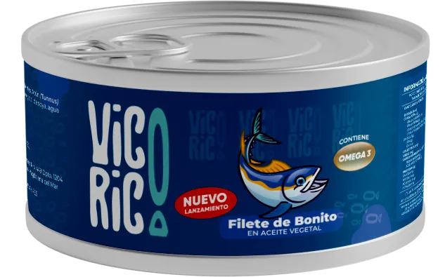 El Bonito (Sarda chilensis) es un pez de carne firme y nuestros filetes son seleccionados y limpiados cuidadosamente para garantizar una textura compacta y libre de impurezas, conservados en un aceite vegetal. Procesado con altos estándares de calidad para conservar su alto contenido de Omega-3 y proteínas. Presentación en caja de 48 unidades de 140 g y 170 g.
