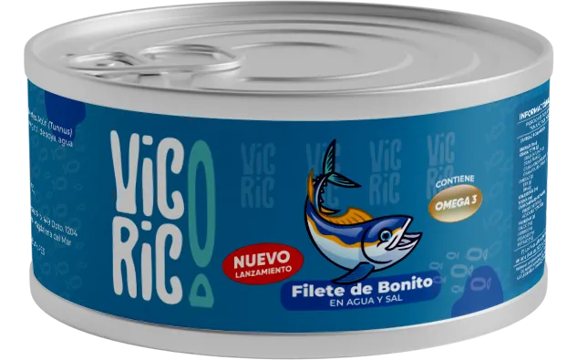 Nuestra conserva de Bonito al Natural (Sarda sarda) ofrece filetes seleccionados y limpiados cuidadosamente para garantizar una textura compacta y libre de impurezas, envasados únicamente con agua y una pizca de sal marina para preservar el color y la textura firme y no perder sus propiedades nutricionales originales. Presentación en caja de 48 unidades de 140 g y 170 g.