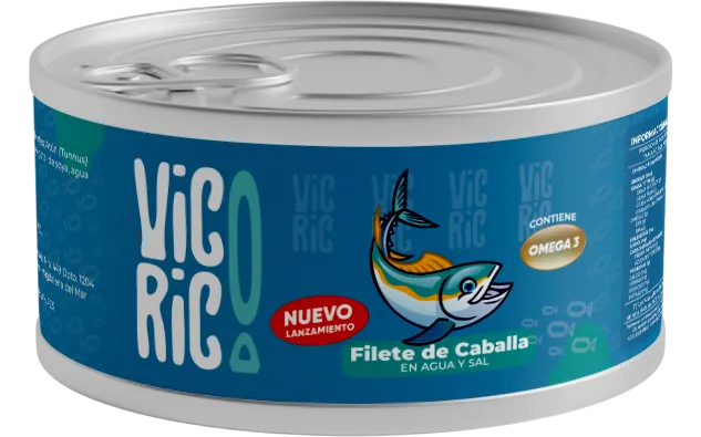 Nuestra conserva de Caballa (Scomber scombrus o Scomber japonicus) destaca por sus filetes largos, de textura carnosa, cuidadosamente seleccionado y conservado únicamente en agua y sal para respetar la integridad nutricional del pescado azul que deleita a los paladares más exigentes. Presentación en caja de 48 unidades de 140 g y 170 g.