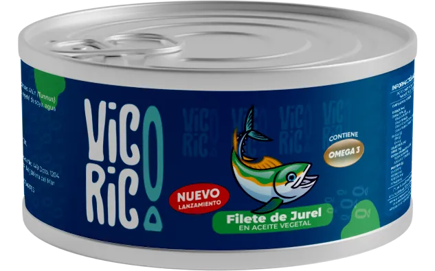 Nuestra conserva de Jurel (Trachurus murphyi) presenta filetes seleccionados de un color ligeramente cobrizo y textura compacta. Es un pescado azul de alto rendimiento energético, conservado en un aceite vegetal que suaviza su carácter y garantiza una jugosidad prolongada con su alto contenido de Omega-3 y proteínas. Presentación en caja de 48 unidades de 140 g y 170 g.