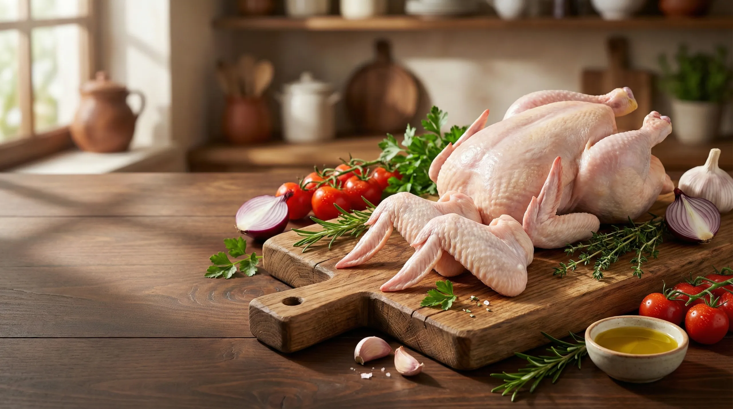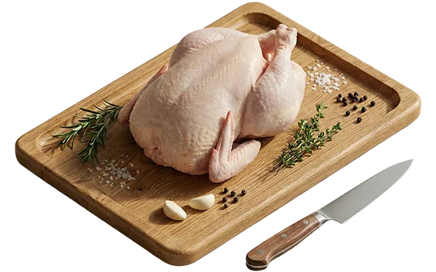 Ave importada (Origen: EE.UU /Brasil/Chile), eviscerada sin menudencias, empacada en caja de cartón con peso de 20 kg conservada mediante congelación profunda a -18 °C para asegurar su estabilidad microbiológica y frescura.